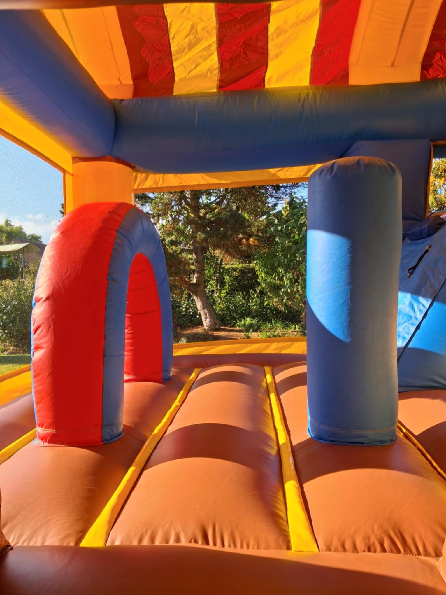 GROOT VOORDEEL: Het piratenspringkasteel is volledig overdekt dus kan bij minimum aan regen ook nog gebruikt worden zodat de kinderen droog kunnen blijven springen.